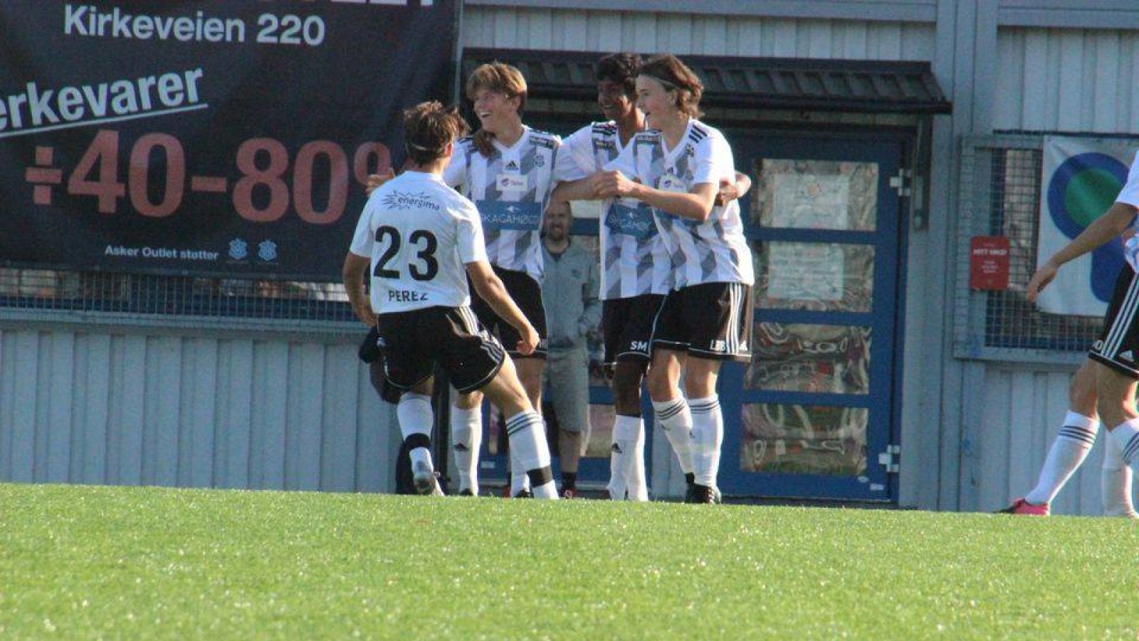 10 min ut i andre omgang får Asker frispark fra 18-19 meter. Henrik Olsen gjør seg klar og er veldig oppmerksom og setter frisparket rundt muren og kontant i nettet. 3-1 og nå svinger det av laget og det er topp stemning på den delen av tribunen som har hjertet sitt i Asker..