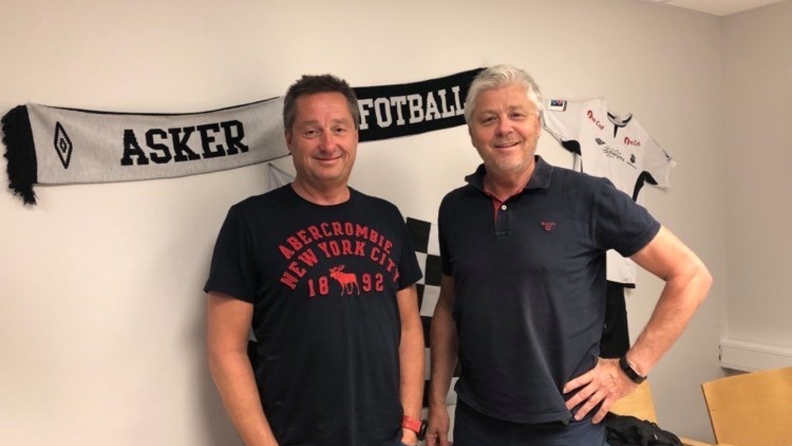 På bildet ser dere daglig leder i Energima AS, Arild Magnussen, sammen med med Rune Klemetsdal, leder for salg og marked i Asker Fotball.